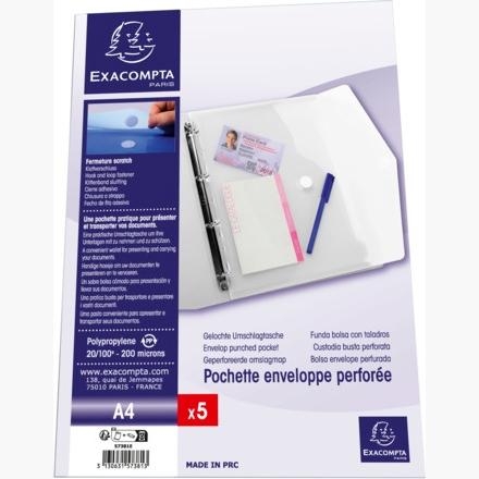 EXACOMPTA BOLSA SOBRE TALADROS A4 PP C/AUTOADHESIVO PACK DE 5 TRASPARENTE INCOLORO
