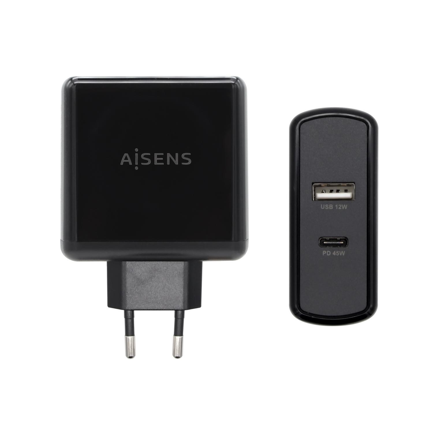 AISENS CARGADOR 57W, 1XUSB-C PD3.0 45W, 1XUSB-A 5V/2.4A 12W, NEGRO