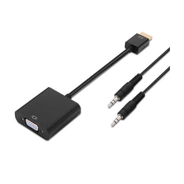 AISENS CONVERSOR HDMI A SVGA + AUDIO, HDMI A/M - SVGA/H + JACK 3.5/H NEGRO 10CM+1,0M