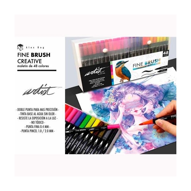 ALEX BOG MALETÍN 48 ROTULADORES FINE BRUSH CREATIVE GAMA ARTIST 2 PUNTAS C/SURTIDOS