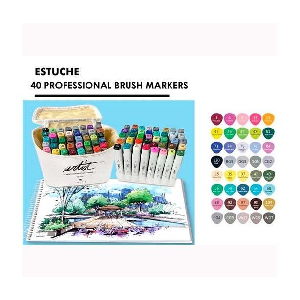 ALEX BOG ROTULADORES CANVAS LUXE PROFESSIONAL BRUSH MARKET DOBLE PUNTA BISELADA / PINCEL C/SURTIDOS EN ESTUCHE DE 40