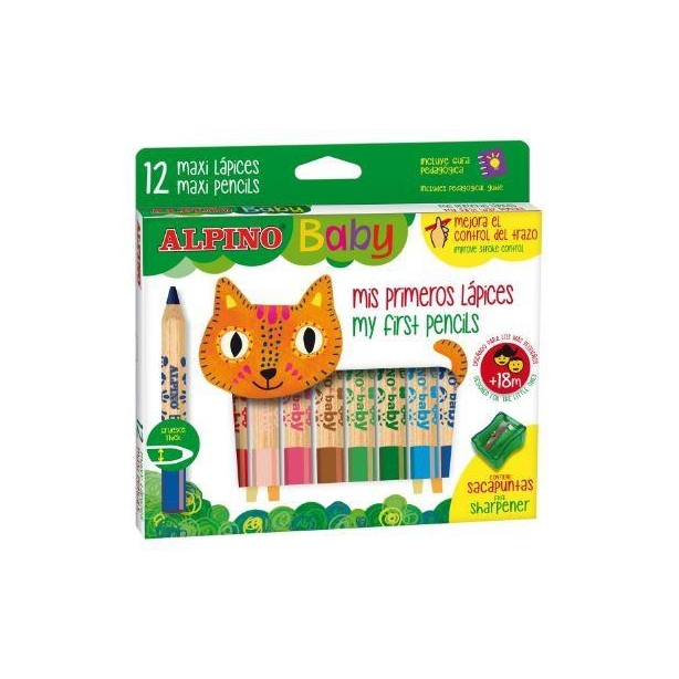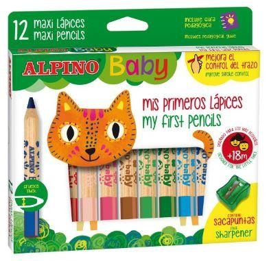 ALPINO LÁPICES DE COLORES BABY MAXI LIGEROS PARA NIÑOS ESTUCHE DE 12 C/SURTIDOS