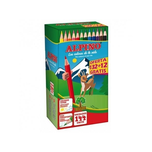 ALPINO LÁPICES DE COLORES FESTIVAL 175MM CAJA DE 132+12 GRATIS C/SURTIDOS
