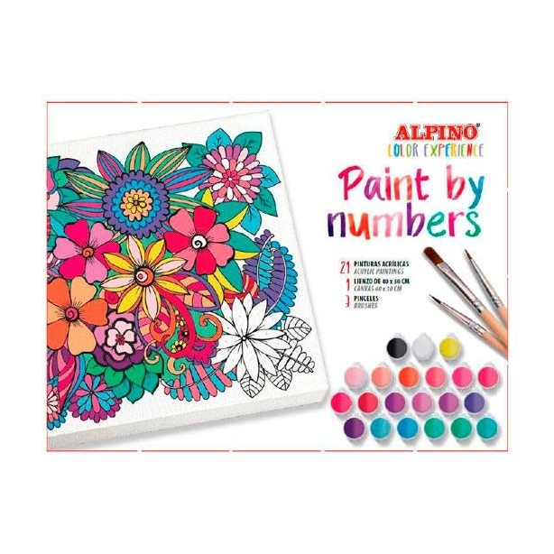 ALPINO PAINT BY NUMBERS COLOR EXPERIENCE PINTURA ACRÍLICA ESTUCHE 21U + 1 LIENZO + 3 PINCELES C/SURTIDOS