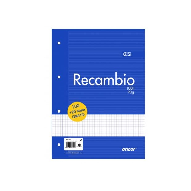 ANCOR RECAMBIO A4 100+20 HOJAS 90G Q4X4 4 TALADROS