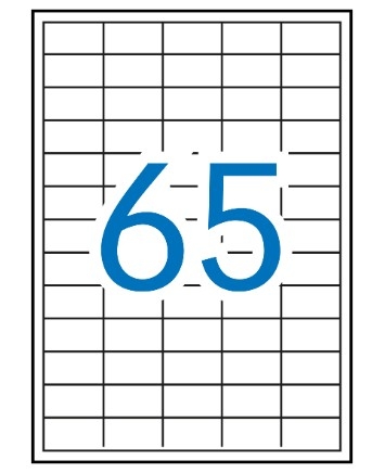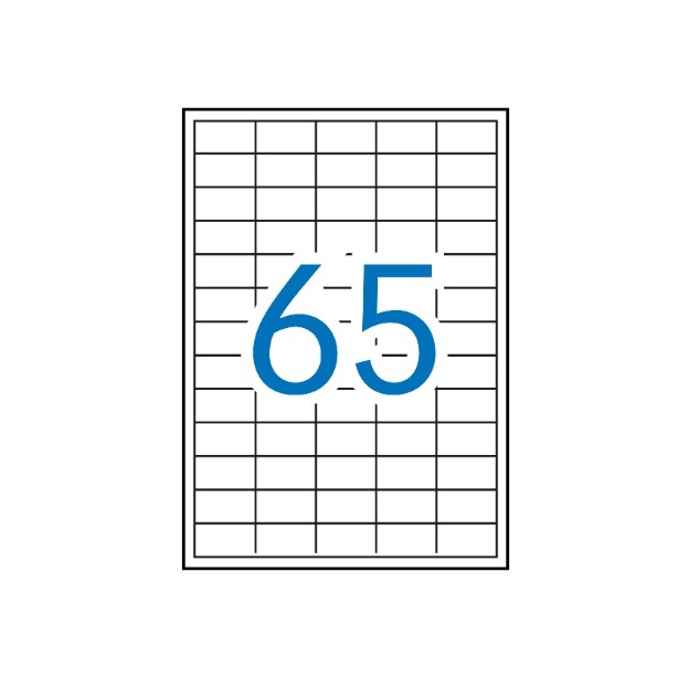 Etiquetas blancas cantos rectos tamaño 38,0 x 21,2 mm con adhesivo removible para múltiples usos. Pack con 100 hojas (6.500 etiquetas).