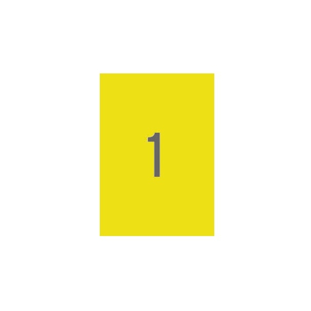 Etiquetas amarillas cantos rectos tamaño 210,0 x 297,0 mm con adhesivo permanente. Pack con 20 hojas (20 etiquetas). Las etiquetas de colores son ideales para destacar tu información en un sobre de envío, paquete u objeto.