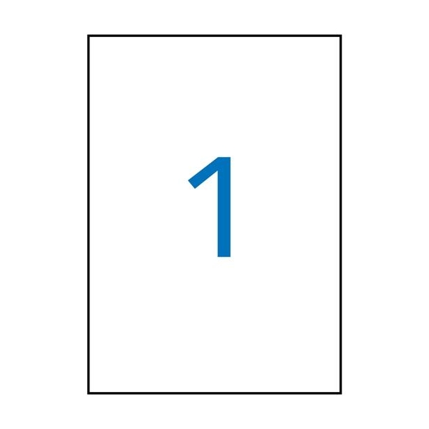 Etiquetas blancas cantos rectos tamaño 210,0 x 297,0 mm con adhesivo permanente. Pack con 20 hojas (20 etiquetas). Etiquetas blancas de poliéster con acabado mate resistentes a la intemperie y a la corrosión ambiental.