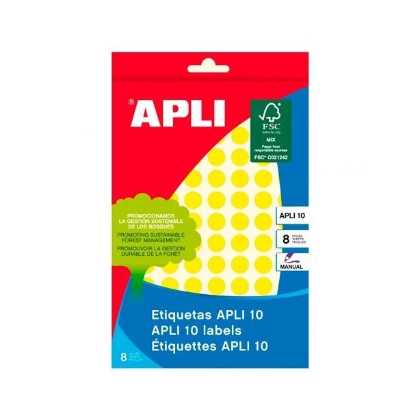 APLI ETIQUETAS ADHESIVAS CIRCULARES Ø10MM ESCRITURA MANUAL 126 X 8H APLI 10 AMARILLO