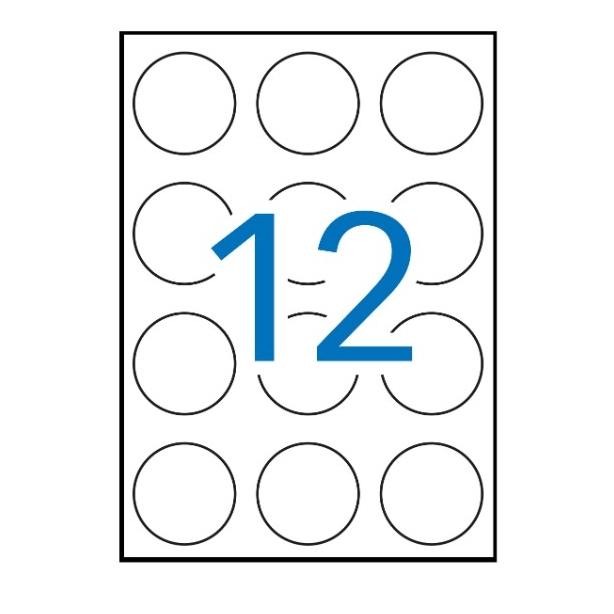 Etiquetas blancas circulares tamaño Ø 60 mm con adhesivo permanente para múltiples usos. Pack con 100 hojas (1.200 etiquetas). Perfectas para identificar envíos de correspondencia, objetos, paquetería o para clasificar. Excelente calidad de impresión en impresoras inkjet, láser o fotocopiadoras.
