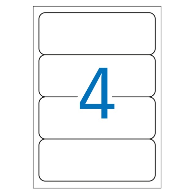 Etiquetas blancas cantos romos tamaño 190,0 x 61,0 mm con adhesivo permanente especiales para archivo. Pack con 25 hojas (100 etiquetas). Las etiquetas ideales para poner orden. Perfectas para archivar, ordenar o personalizar carpetas de documentos y mejorar así el orden en tu casa o en la oficina.