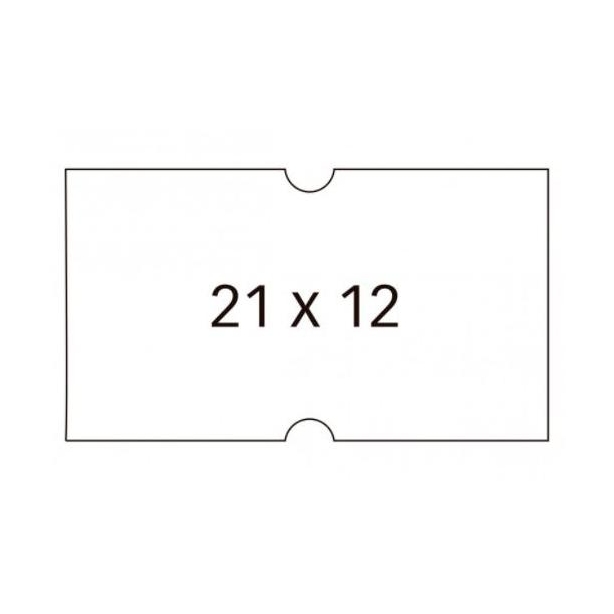 Etiquetas blancas tamaño 21 x 12 mm para máquinas etiquetadoras de precios de 1 línea. Pack con 6 rollos (1.000 etiquetas/rollo). Etiquetas de adhesivo permanente con cantos rectos.