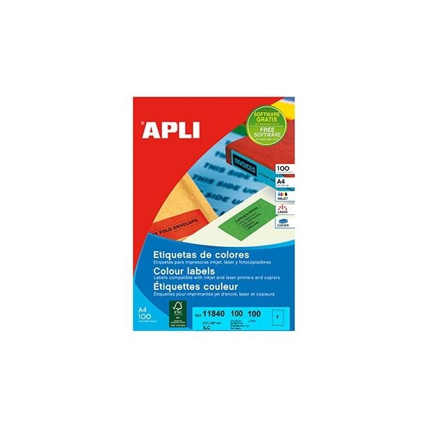 APLI ETIQUETAS PERMANENTES 210X297MM INKJET/LÁSER C/RECTOS 1 X 100H ROJO