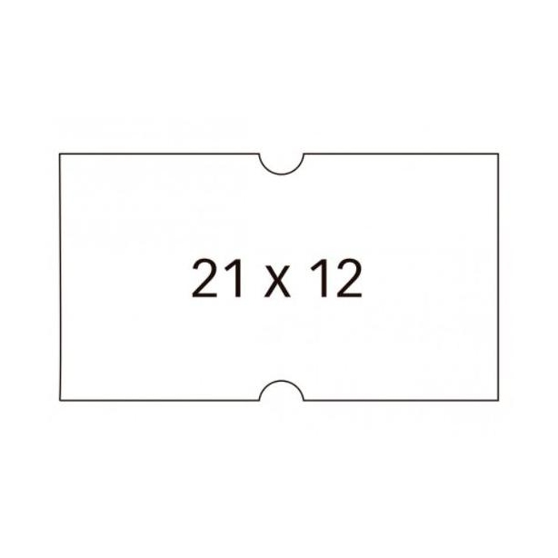 Etiquetas blancas tamaño 21 x 12 mm para máquinas etiquetadoras de precios de 1 línea. Pack con 6 rollos (1.000 etiquetas/rollo). Etiquetas de adhesivo removible con cantos rectos.