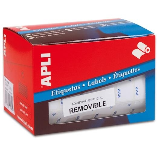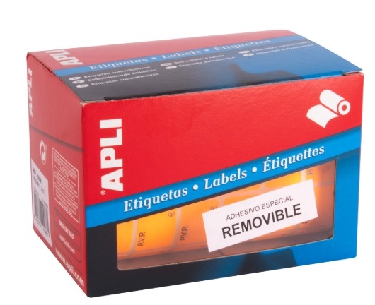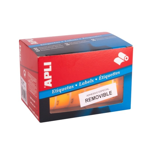 APLI ETIQUETAS REMOVIBLES PARA PRECIOS IMPRESAS "PVP" 16X22MM ESCRITURA MANUAL ROLLO DE 2520 NARANJA FLUORESCENTE
