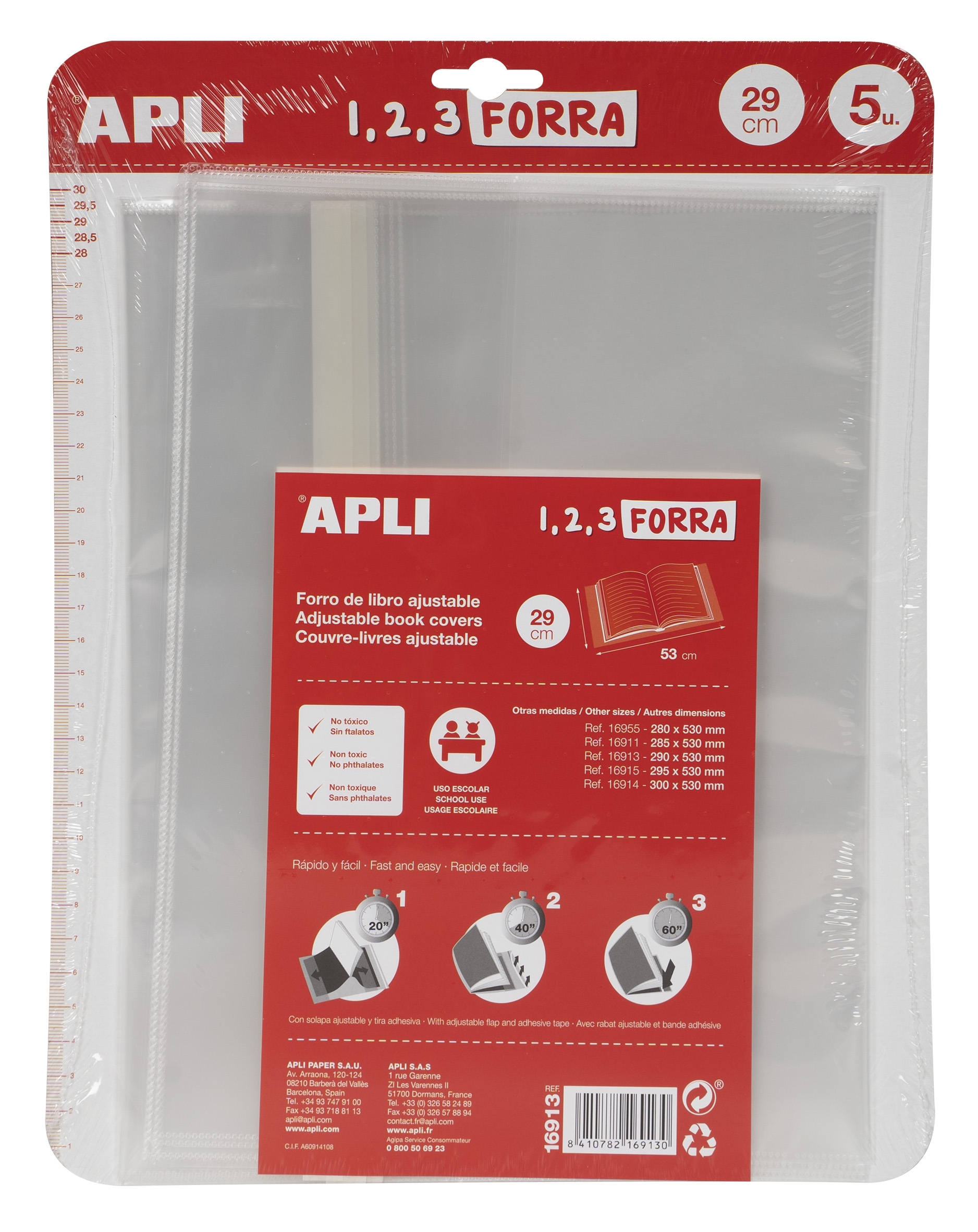 APLI FORRO DE LIBROS CON SOLAPA AJUSTABLE PP 290MM -BLISTER 5U-