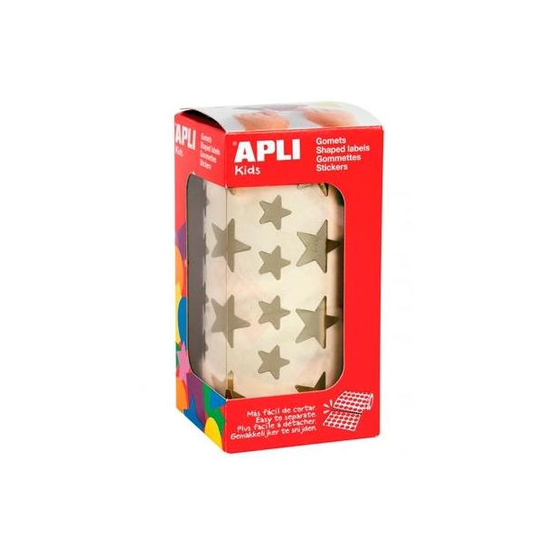 Rollo de gomets con forma de estrella en dos tamaños diferentes (12,5 mm y 19,5 mm) en color oro metalizado con adhesivo permanente. Cada rollo contiene 59 hojas pretroqueladas para una fácil separación, un total de 2.360 gomets por rollo. El formato perfecto para usar en escuelas, guarderías, talleres infantiles o cualquier otro colectivo que trate con niños. Jugar y crear con gomets es una actividad básica que permite desarrollar la psicomotricidad fina y trabajar, al mismo tiempo, varias capacidades y habilidades como el conocimiento de los colores, las formas geométricas y los tamaños; el desarrollo de la lógica y la creatividad; el trabajo en equipo o el dominio del espacio, entre otros.