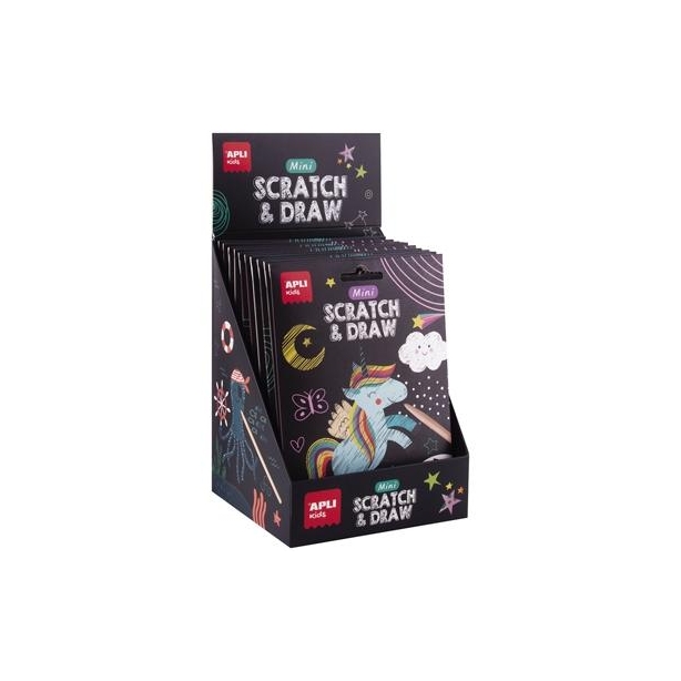 APLI MINI LÁMINAS RASCA Y DIBUJA SET SCRATCH&DRAW CAJA EXPOSITORA DE 12 SURTIDOS +4 AÑOS