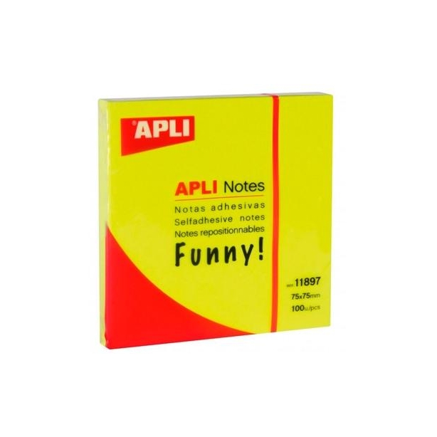APLI NOTAS ADHESIVAS FUNNY 75X75MM BLOC 100H AMARILLO FLUORESCENTE -12U-