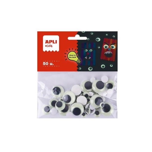 APLI OJOS MÓVILES GLOW IN THE DARK VARIOS TAMAÑOS SURTIDOS BOLSA DE 50 NEGRO +4 AÑOS