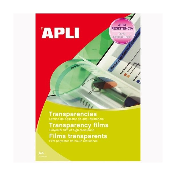 APLI PACK 20 HOJAS TRANSPARENCIAS A4 SIN BANDA PARA LÁSER