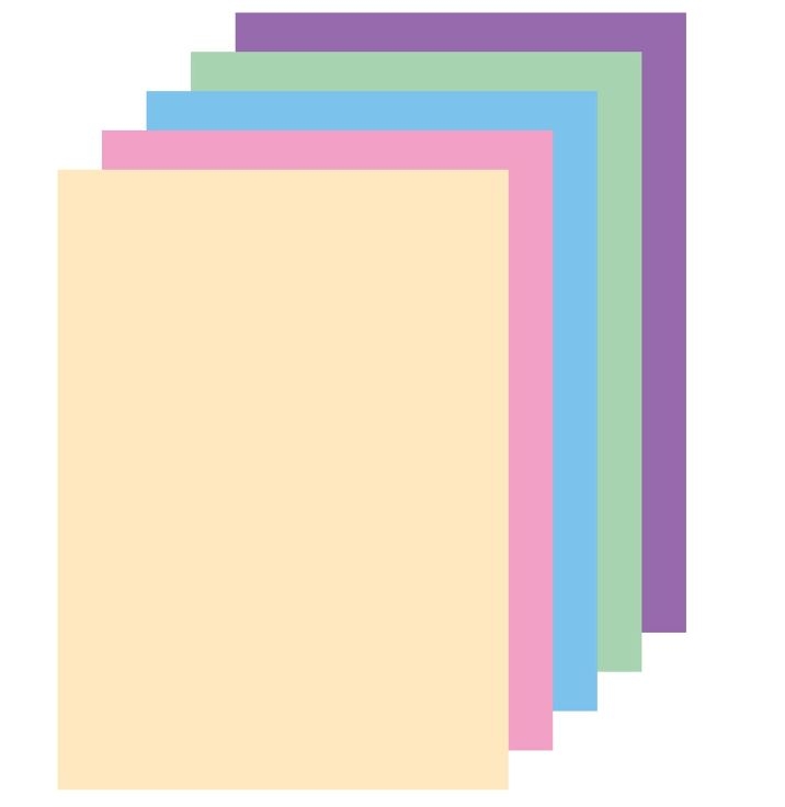 Pack de papeles de 80 g/m² en tamaño A4 y tonos pastel surtidos: marfil, rosa, azul pastel, verde pastel y lavanda. Cada pack contiene 500 hojas (100 hojas/color). Papeles de alta calidad con tintado homogéneo ideales para la escuela, la oficina y el hogar. Aptos para impresoras inkjet, láser, fotocopiadoras o escritura manual.