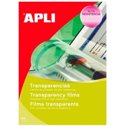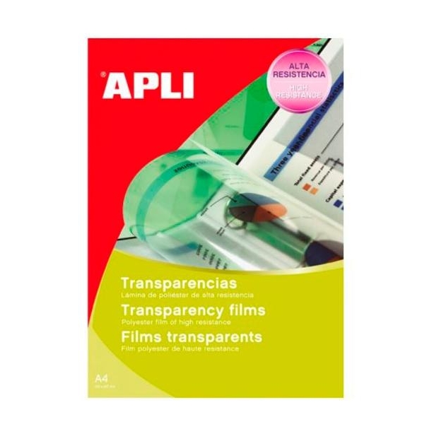 APLI TRANSPARENCIAS SIN BANDA PARA COPY CARGA 1 A 1 LÁMINA POLIESTER A4 100 MICRAS 100 HOJAS