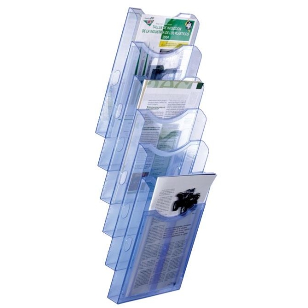 ARCHIVO 2000 EXPOSITOR MURAL ARCHIPLAY 6 COMPARTIMENTOS DIN A4 VERTICAL 190X235X685 MM AZUL TRANSPARENTE