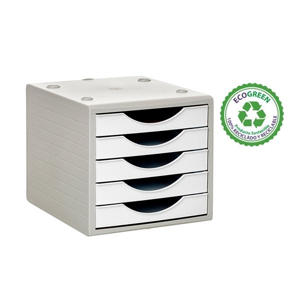 ARCHIVO 2000 MÓDULO ORGANIZADOR ECOGREEN SOBREMESA 5 CAJONES 340X270X260 RECICLADO BLANCO PASTEL