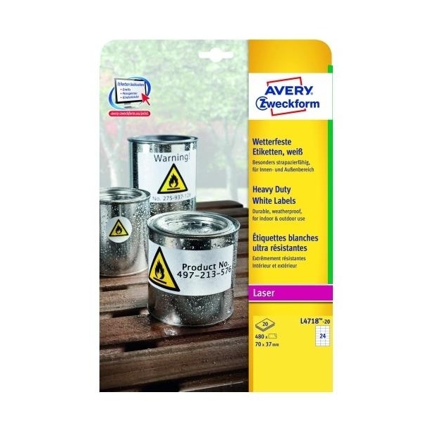 AVERY ETIQUETAS ADHESIVAS EXTRA RESISTENTES 70X37MM LÁSER 24 X 20H POLIÉSTER BLANCO