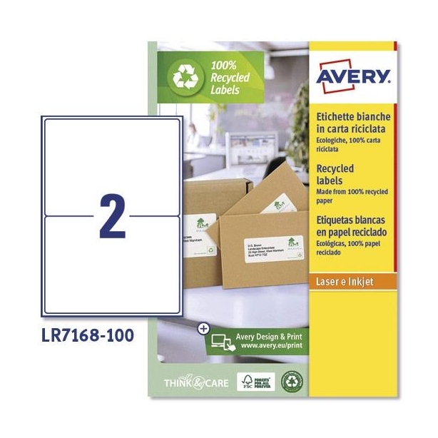 AVERY ETIQUETAS PERMANENTES 199,6X143,5MM INKJET/LÁSER PARA ENVÍOS 2 X 100H 100% RECICLADO BLANCO