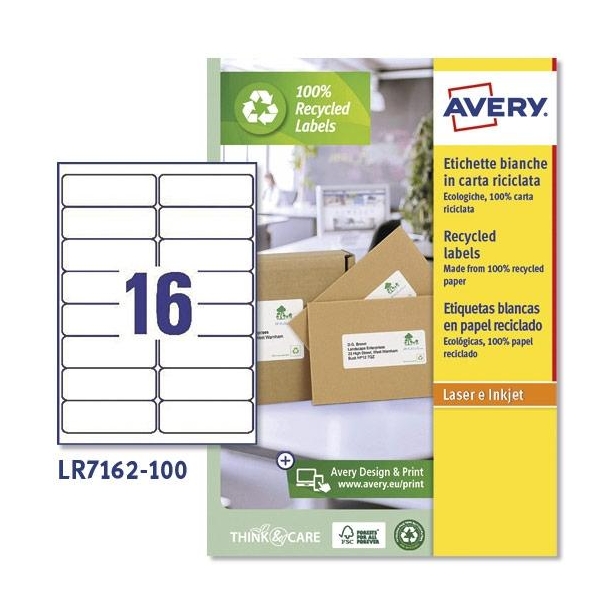 AVERY ETIQUETAS PERMANENTES 99,1X33,9 INKJET/LÁSER PARA ENVÍOS 16 X 100H 100% RECICLADO BLANCO