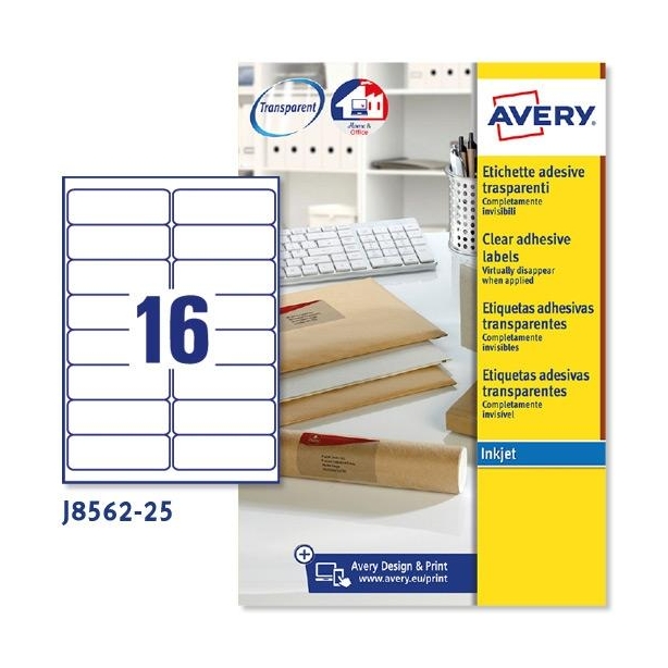 AVERY ETIQUETAS PERMANENTES PARA SOBRES 99,1X33,9MM INKJET 16 X 25H TRANSPARENTES