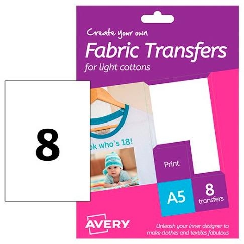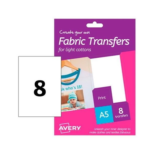 AVERY PACK 8 HOJAS X1 PAPEL TRANSFER TEXTIL A5 INKJET PARA ALGODÓN BLANCO