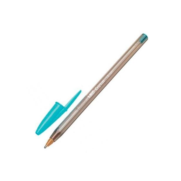 El boli BIC Cristal Fun viene en un llamativo color turquesa; esta caja contiene 20 bolígrafos en este color
