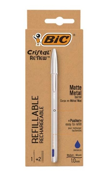 BIC BOLÍGRAFO RENEW CUERPO METAL TINTA AZUL + 2 RECAMBIOS