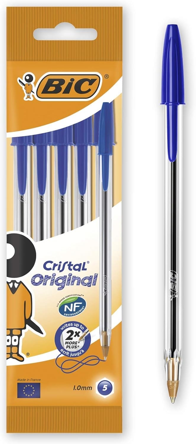 BIC BOLSA 5 BOLIGRAFOS CRISTAL CON CUERPO TRANSPARENTE TRAZO 0,4MM.
