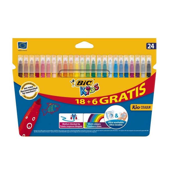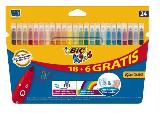 BIC ESTUCHE 24 ROTULADORES ULTRALAVABLES KID COULEUR TRAZO 0,8MM.