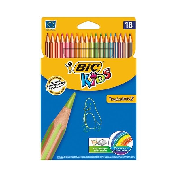 BIC LÁPICES DE COLORES KIDS TROPICOLORS ESTUCHE DE 18 C/SURTIDOS