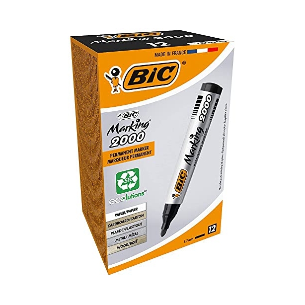 BIC MARCADOR PERMANENTE MARKING 2000 PUNTA REDONDA NEGRO CAJA (12 UNIDADES)