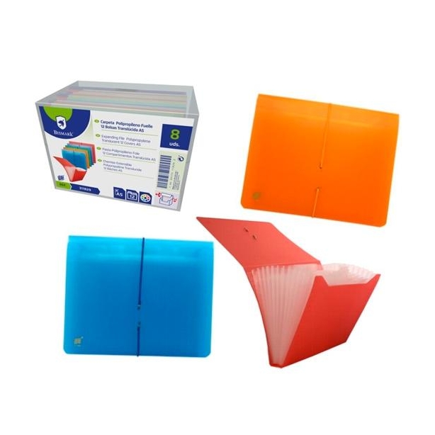 BISMARK CARPETA FUELLE ACORDEÓN 13 C/GOMA A5 PP TRANSPARENTE C/SURTIDOS