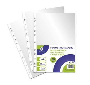BISMARK FUNDAS MULTITALADRO CRISTAL A4 GALGA EXTRA (PACK DE 50 UNIDADES)