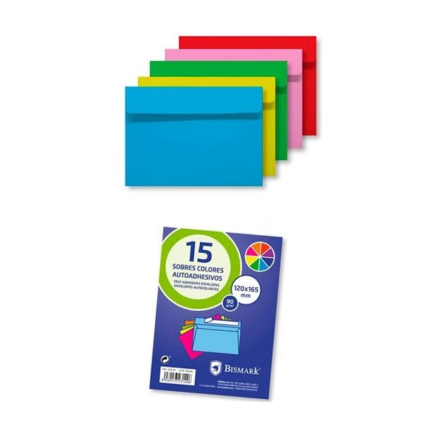 BISMARK SOBRE DE PAPEL AUTOADHESIVO 90GR 120X165MM COLORES 15 SOBRES SURTIDOS