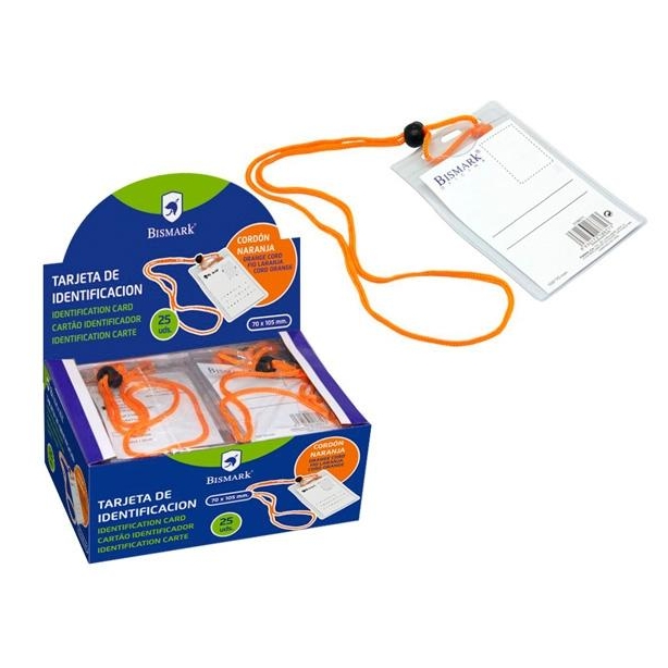 BISMARK TARJETA DE IDENTIFICACIÓN VERTICAL 70X105 MM C/CORDÓN NARANJA -25U-