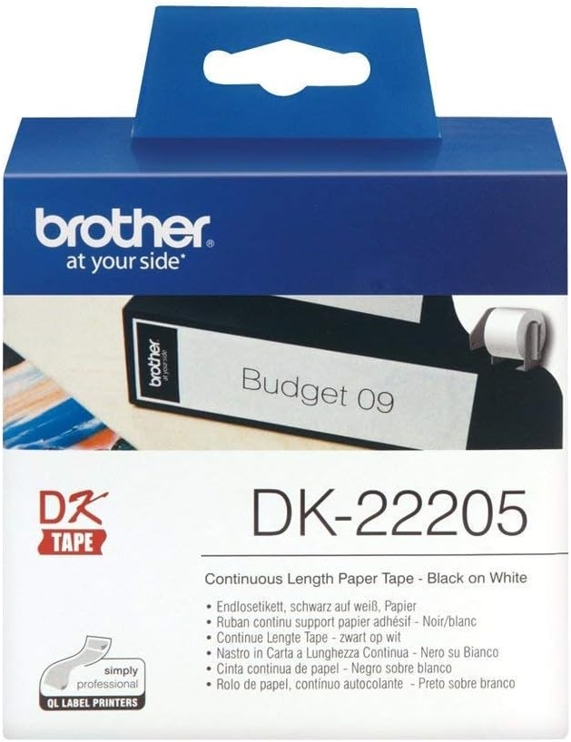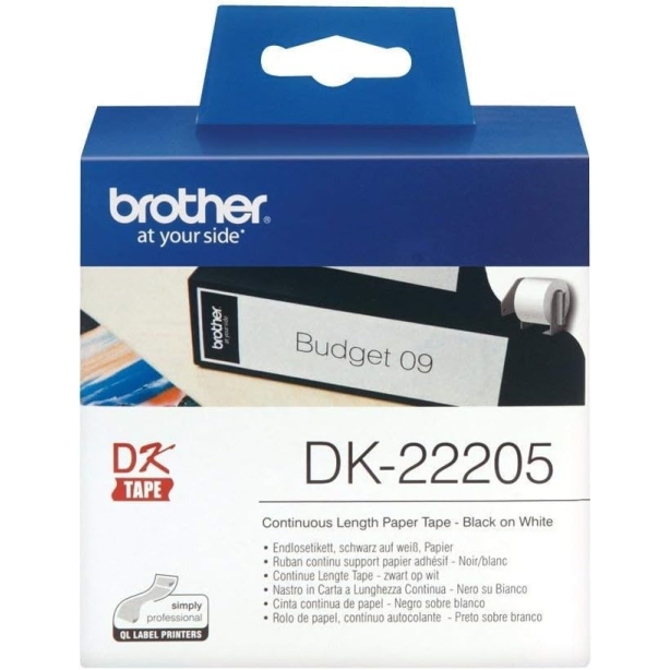 Brother DK22205 (DK-22205) rollo de cinta continua para etiquetas originales adhesivas de tamaño personalizado.
