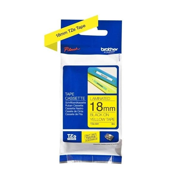 BROTHER CINTA ROTULADORA LAMINADA FLEXIBLE NEGRO SOBRE AMARILLO DE 18MMX8M