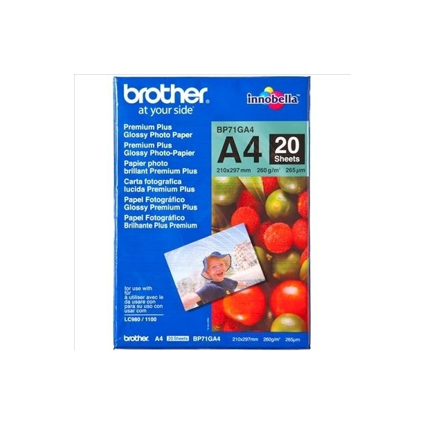 BROTHER PAPEL FOTOGRÁFICO GLOSSY PREMIUM A4: PACK DE 20 HOJAS DE PAPEL BRILLO DE 260 G/M2.
