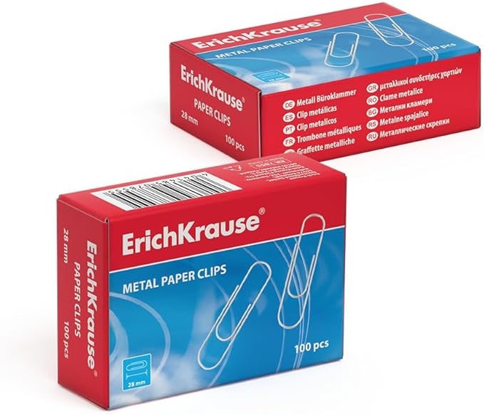 CAJA 100 CLIPS DE PAPEL NIQUELADOS 28MM ERICH KRAUSE
