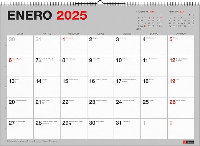 ???? CALENDARIO PARED EXTRA GRANDE 12 meses (Enero 2025 - Diciembre 2025) con espiral doble y una práctica pieza para colgar. El calendario 2025 es perfecto para mantener tus días organizados con estilo y funcionalidad. ¡No dejes pasar la oportunidad de tener un año increíblemente organizado con este imprescindible calendario anual tamaño XL!