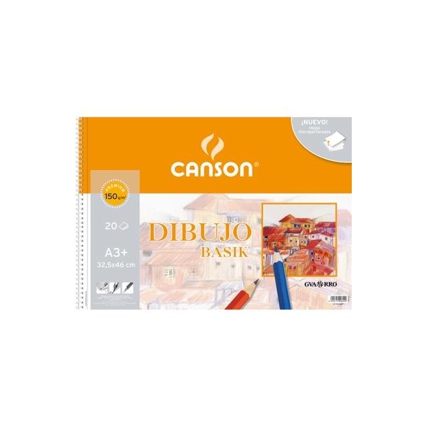 CANSON BLOC DIBUJO BASIK ESPIRAL MICROPERFORADO 20 HOJAS 150 GR. RECUADRO 32,5X46CM -10U-